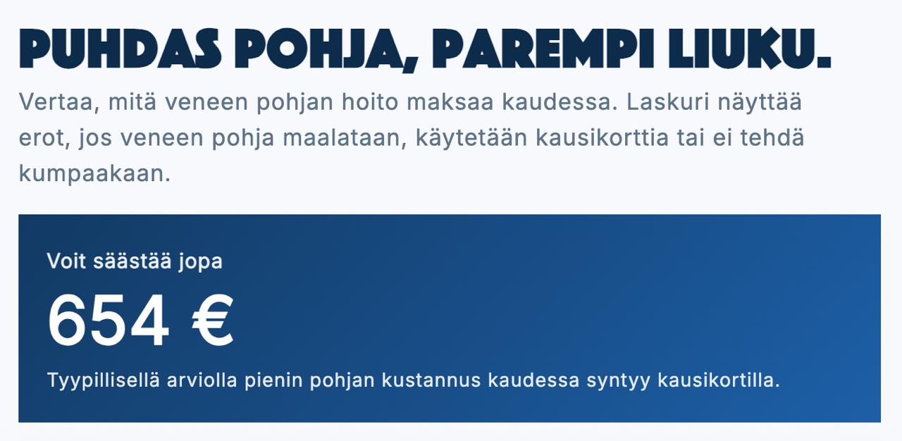 Osta kausikorttiVeneile aina puhtaalla pohjalla! Pienikin määrä likaa veneen pohjassa vaikuttaa huomattavasti veneesi toimintaan, kuten kulutukseen. Pohjaa kannattaa pestä säännöllisesti – noin kerran kuussa – läpi koko veneilykauden.